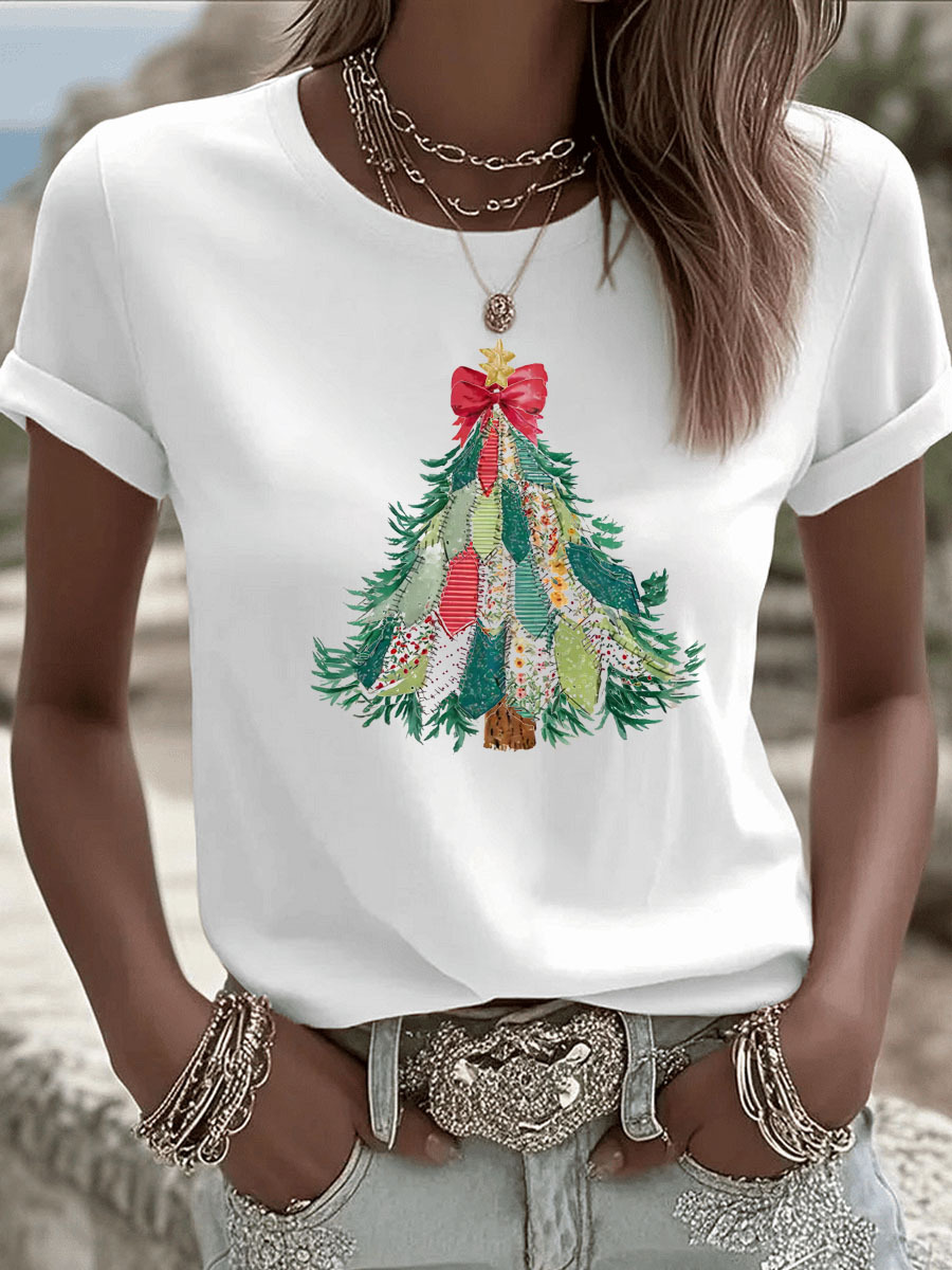 Christmas Tree Pattern Round-Neck 100% Cotton 180g T-Shirt